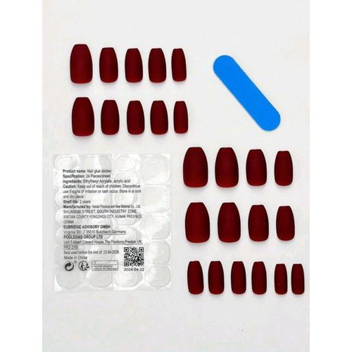 Matte burgundy false nails, Box of 24 pieces